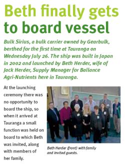 Already in 2002, there were close connections between the New Zealand phosphate importer Ballance Agri-Nutrients and Gearbulk. The news to the right is cut-and-pasted from the newsletter of Port of Tauranga.